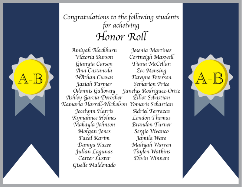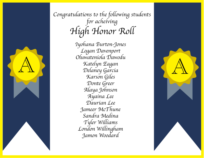 Congratulation to our Quarter 1 Honorees. High Honors are our 'A' average students while Honors are our 'A-B' average students. We are proud and recognize their academic accomplishments this past semester.